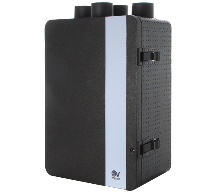 • 2 EC (brushless) motors with shaft turning in ball bearings, each coupled to a backward curved centrifugal impeller; 3 speeds, selectable independently at the moment of installation.