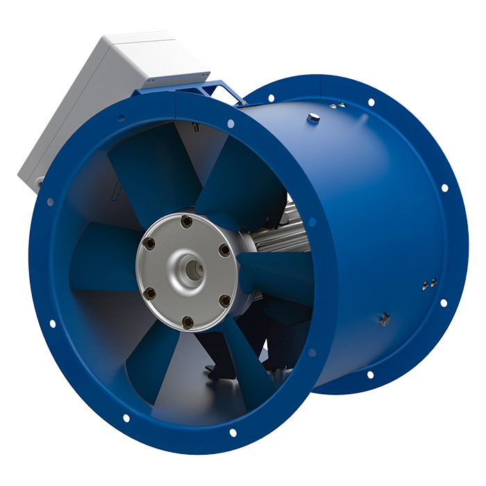 • Long case axial fan with reinforced body, with double flange, made of rolling steel sheet.