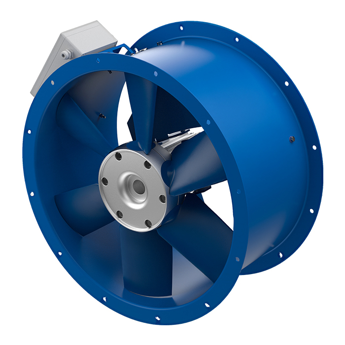 • Short case axial fan with reinforced body, with double flange, made of rolling steel sheet.