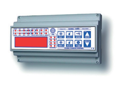 Vort T-PLUS is a device specifically designed for the accurate control of the microclimate of livestock farms. The onboard microcontroller (PLC) has an intuitive user interface with an 8-keys keypad and allows, the sequential programming of the operation of the individual devices installed according to the values of temperature, humidity and wind speed detected. In particular, VORT T-PLUS: • Controls the wind speed, stopping ventilation in case of need/opportunity; • Manages the ventilation intensity, operating (0 to 10-V signal) the EC motors of the connected fans; • Detects temperature and THI values; • Controls up to 4 cylinders with 4 on-off programmable levels; • Controls humidity by blocking cylinder commands, if needed; • Manages temperature and THI alarms; • Allows hourly programmation. • Communicates with VORT MASTER through the integrated RS-485 port The enclosure, in the standard DIN 9 module format, simplifies its installation inside switchboards. The 8-segment display is easily readable; the operating states of the connected products are represented by special LEDs.